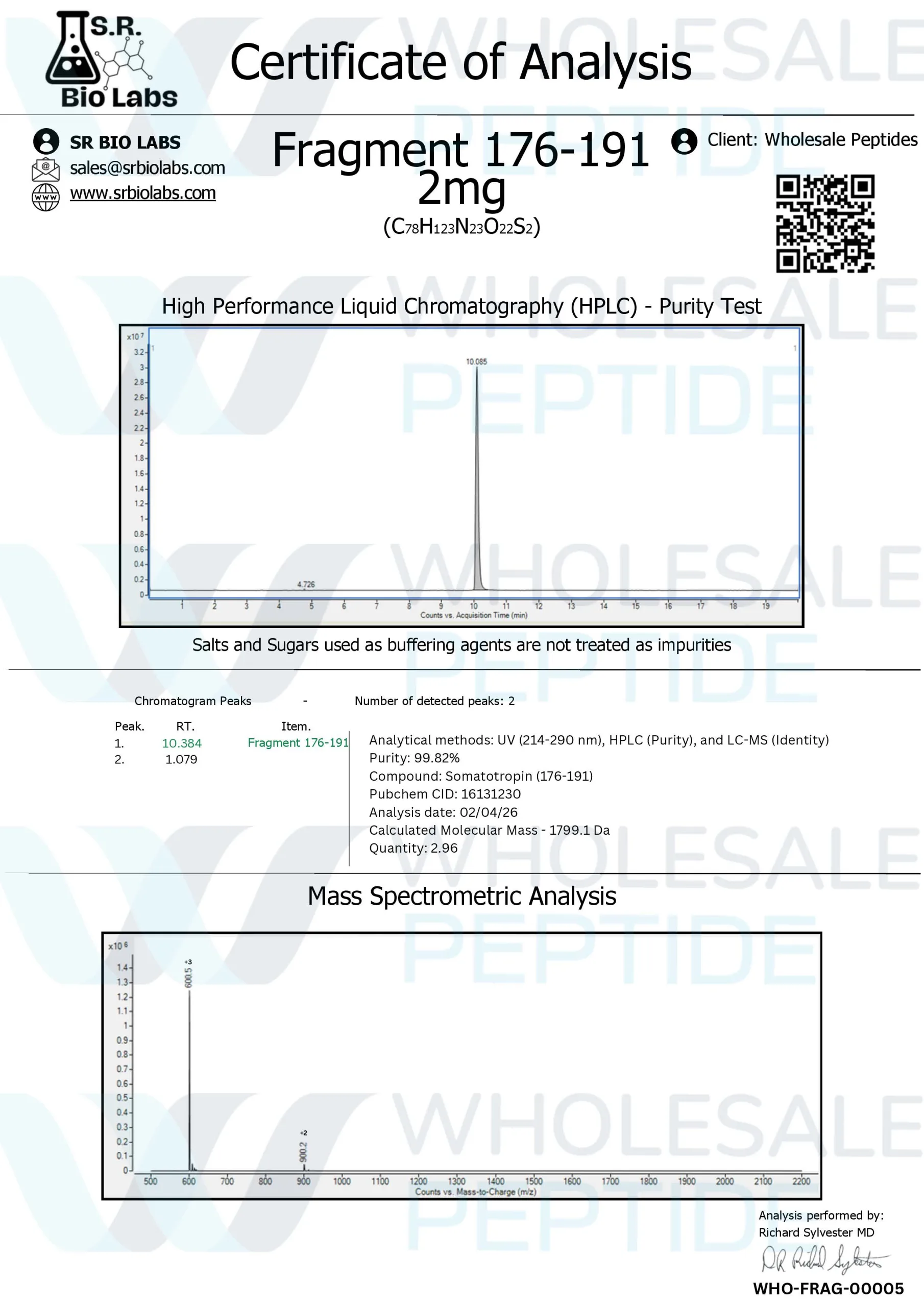 - Peptide Sciences. HPLC analysis and purity certification of HGH Fragment 176-191. Link