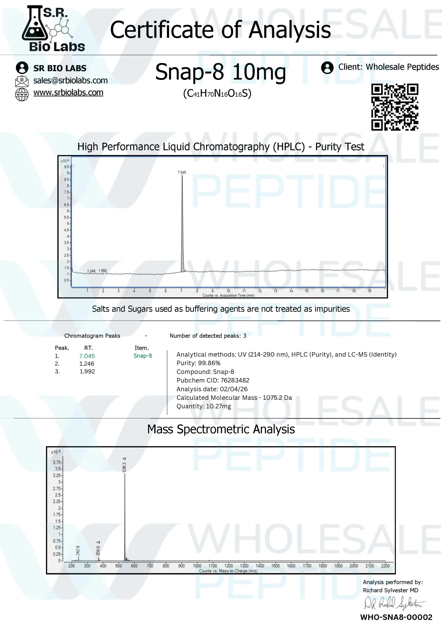 - Wholesale Peptide. Snap 8 Product Information and Handling Guidelines. https://www.wholesalepetide.com